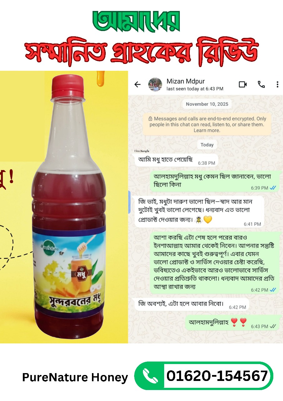 ৪. ফেনা হওয়া স্বাভাবিক সরিষার মধু যদি পাতলা হয়, তবে উপরে সামান্য ফেনা দেখা যেতে পারে। আবার ঘন মধুতেও হালকা ফেনা হতে পারে—এটি প্রাকৃতিক মধুর স্বাভাবিক বৈশিষ্ট্য।